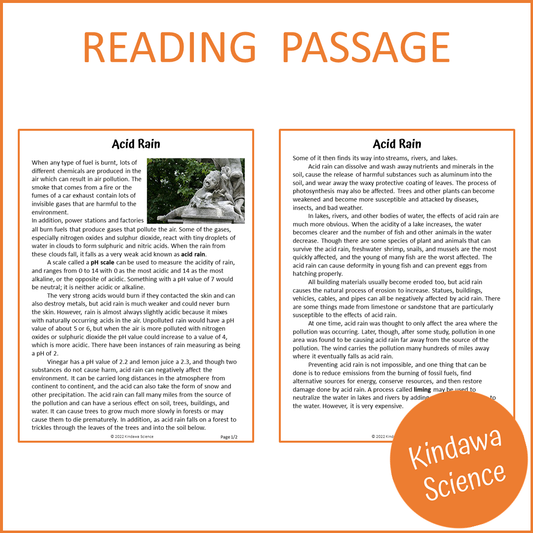 Acid Rain Reading Comprehension Passage and Questions | Printable PDF