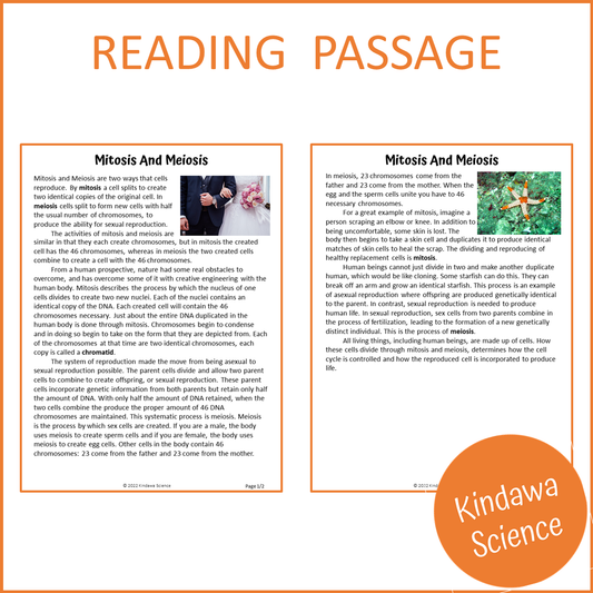 Mitosis And Meiosis Reading Comprehension Passage and Questions | Printable PDF