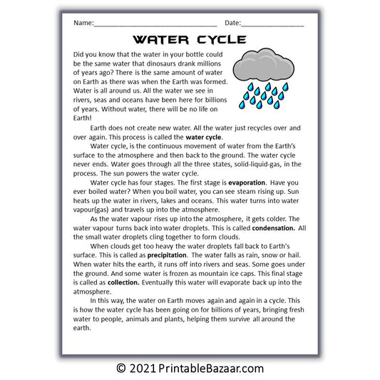 Water Cycle Poem & Visual Poster | Kindergarten & 1st Grade Science Printable