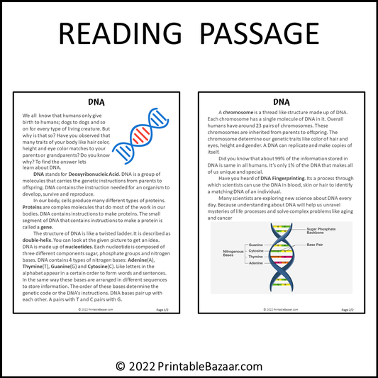 Dna Reading Comprehension Passage and Questions | Printable PDF