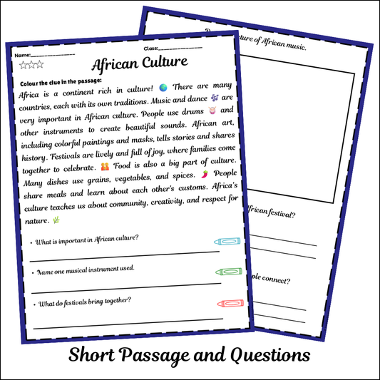 African Culture | Short Reading Comprehension Creative Worksheet