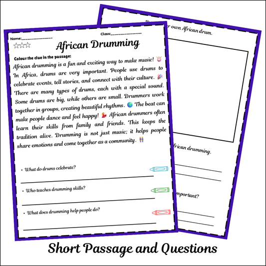 African Drumming | Short Reading Comprehension Creative Worksheet