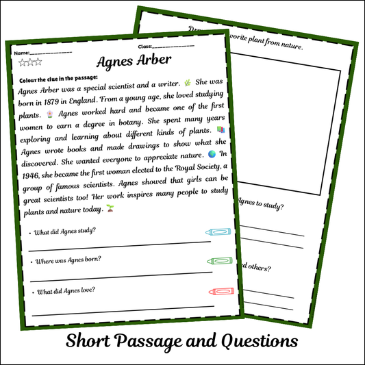 Agnes Arber | Short Reading Comprehension Creative Worksheet