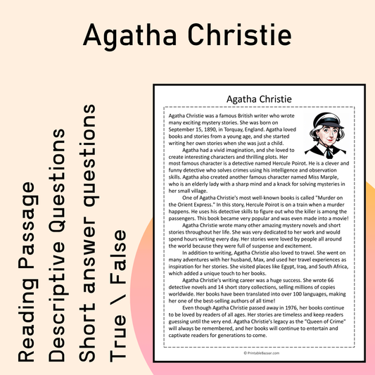 Agatha Christie | Reading Comprehension Passage Printable Activity