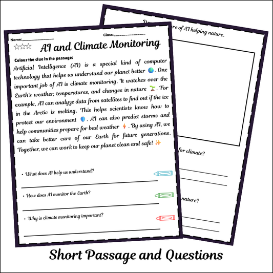 AI and Climate Monitoring | Short Reading Comprehension Creative Worksheet