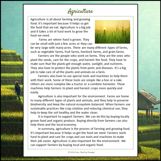Agriculture Reading Comprehension Passage and Questions | Printable PDF