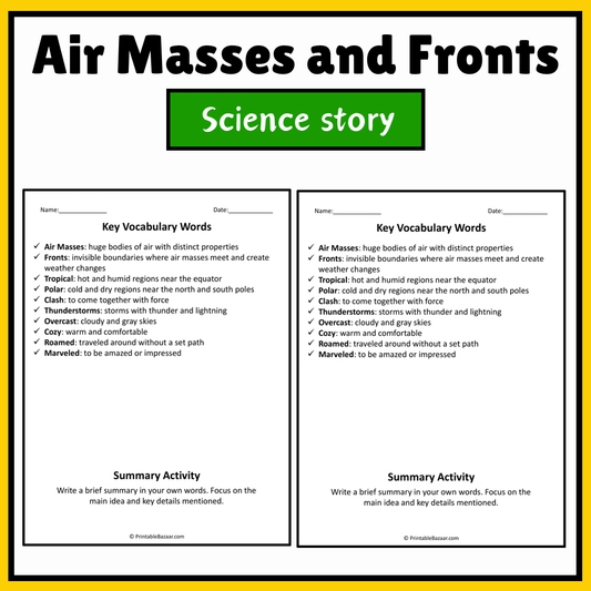Air Masses and Fronts | Science Story Reading Comprehension Activity
