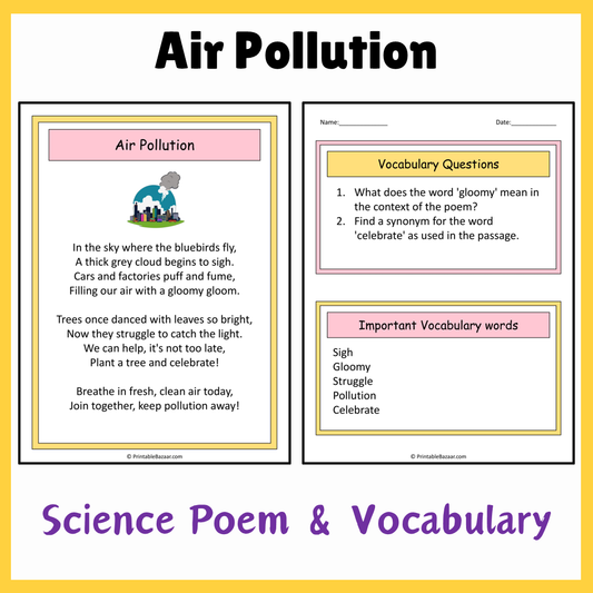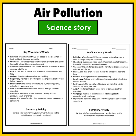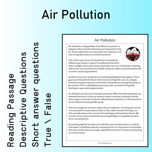 Air Pollution | Reading Comprehension Passage Printable Worksheet