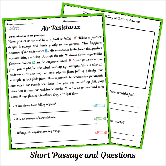 Air Resistance | Short Reading Comprehension Creative Worksheet