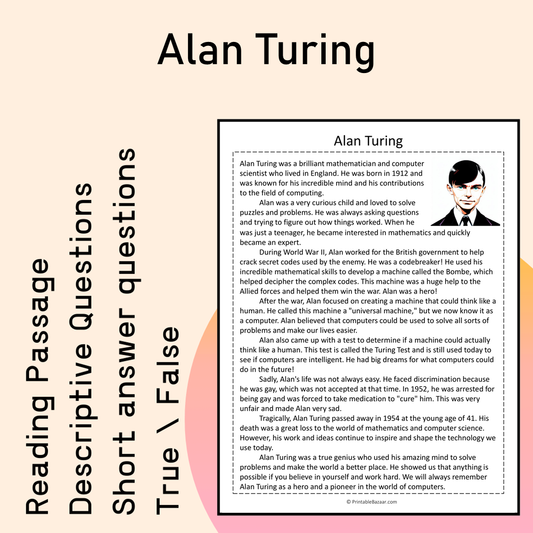 Alan Turing | Reading Comprehension Passage Printable Activity