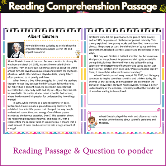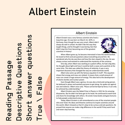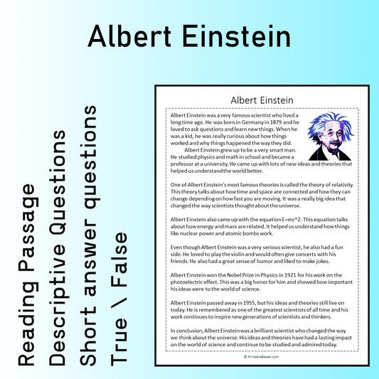 Albert Einstein | Reading Comprehension Passage Printable Worksheet