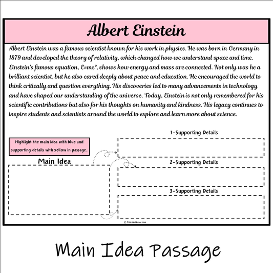 Albert Einstein | Main Idea and Supporting Details Reading Passage and Questions