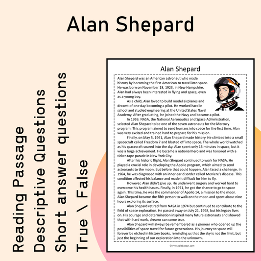 Alan Shepard | Reading Comprehension Passage Printable Activity