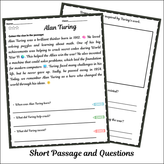 Alan Turing | Short Reading Comprehension Creative Worksheet