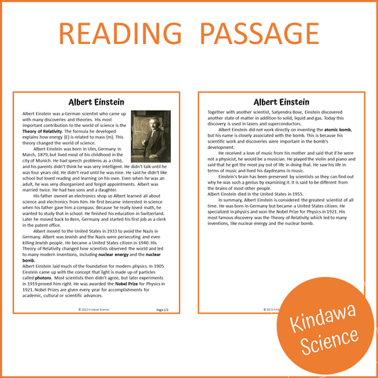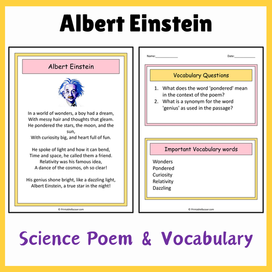 Albert Einstein | Science Poem Reading Comprehension Activity