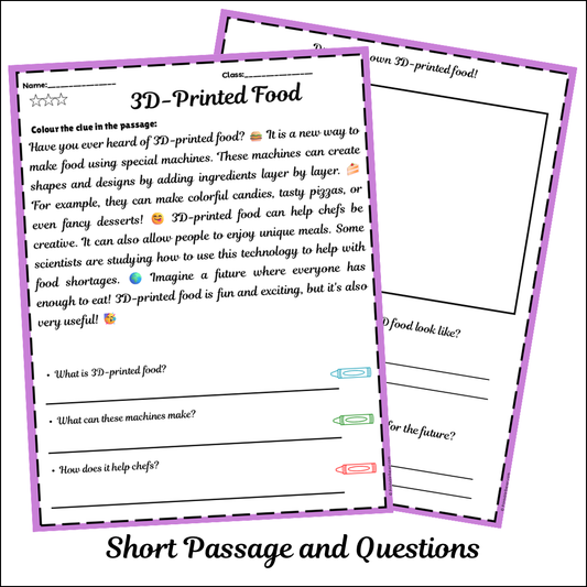 3D-Printed Food | Short Reading Comprehension Creative Worksheet
