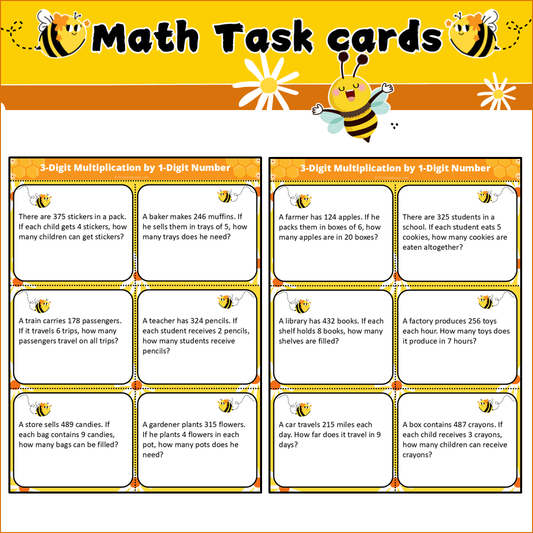 3-Digit Multiplication by 1-Digit Number | Math Task Cards