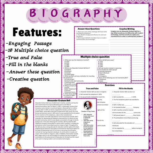 Alexander Graham Bell | Biography Reading Comprehension and Questions Worksheet