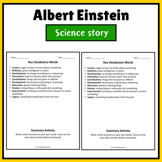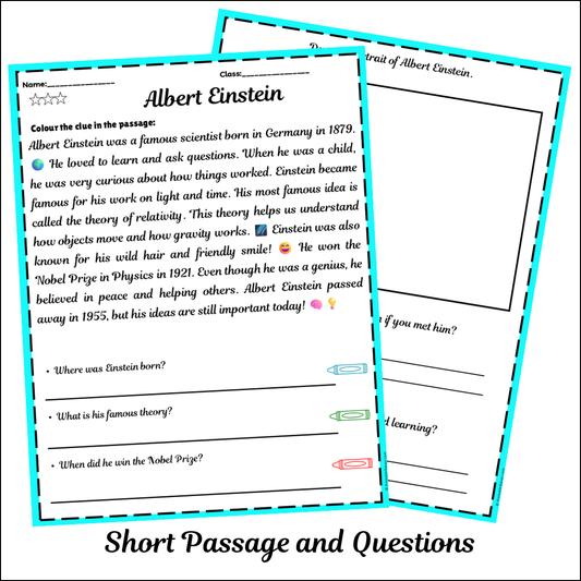 Albert Einstein | Short Reading Comprehension Creative Worksheet