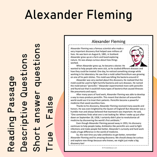 Alexander Fleming | Reading Comprehension Passage Printable Activity