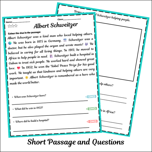 Albert Schweitzer | Short Reading Comprehension Creative Worksheet