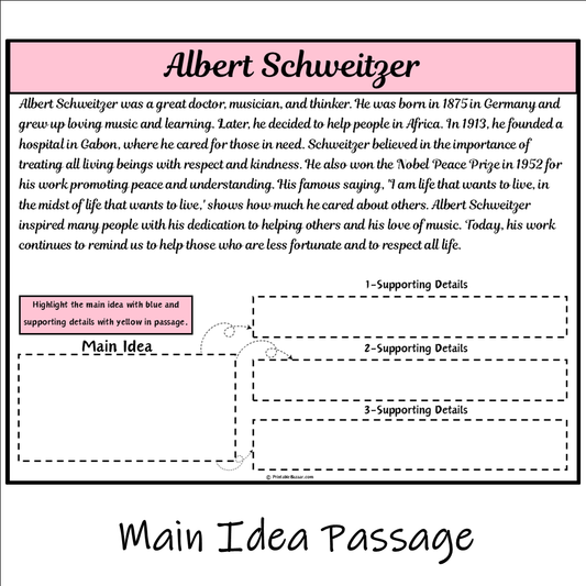 Albert Schweitzer | Main Idea and Supporting Details Reading Passage and Questions