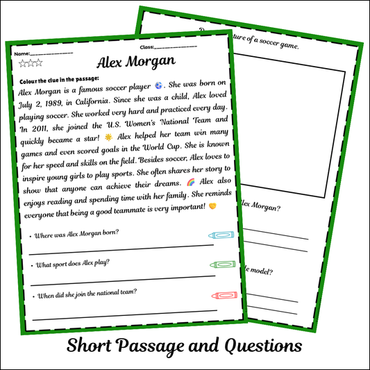 Alex Morgan | Short Reading Comprehension Creative Worksheet