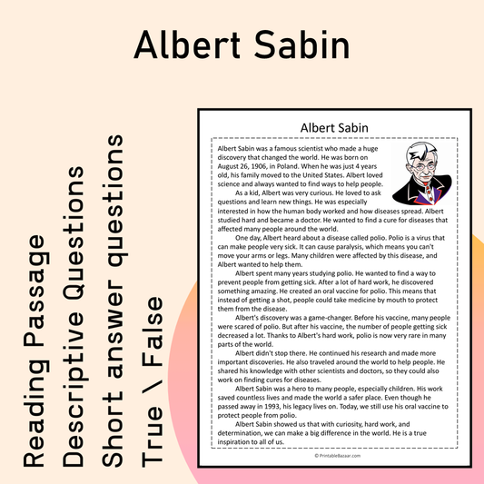 Albert Sabin | Reading Comprehension Passage Printable Activity