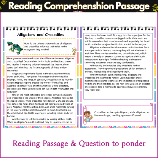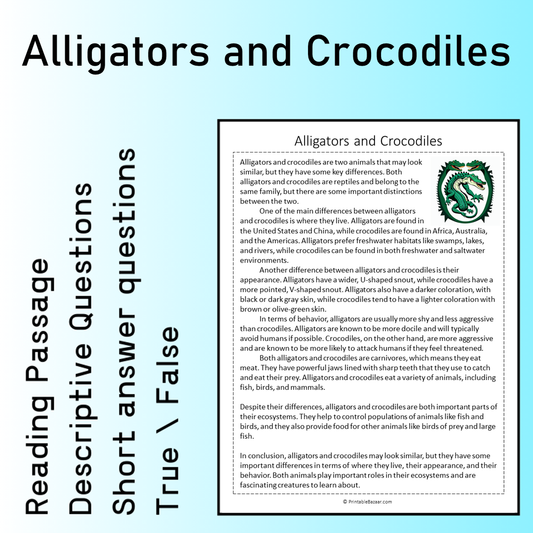 Alligators and Crocodiles | Reading Comprehension Passage Printable Worksheet
