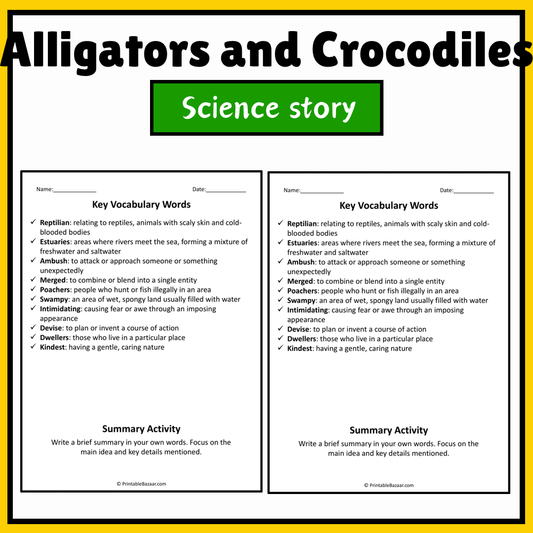 Alligators and Crocodiles | Science Story Reading Comprehension Activity