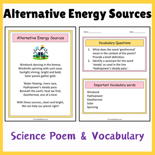 Alternative Energy Sources | Science Poem Reading Comprehension Activity