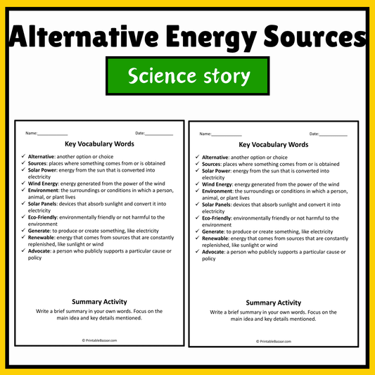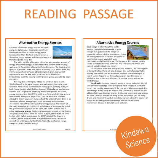 Alternative Energy Sources | Science Story Reading Comprehension Activity