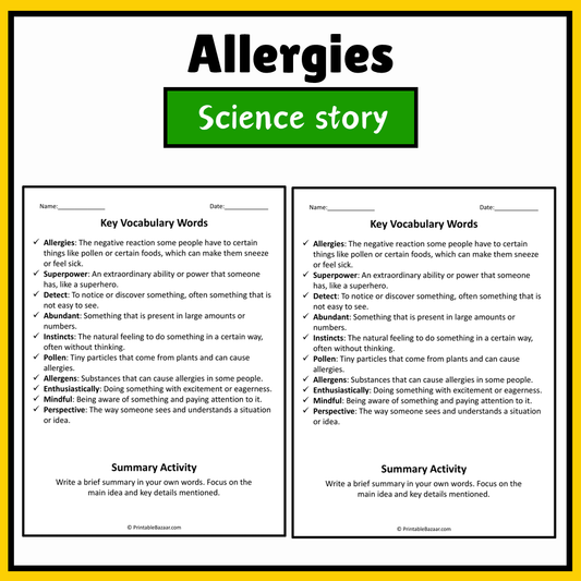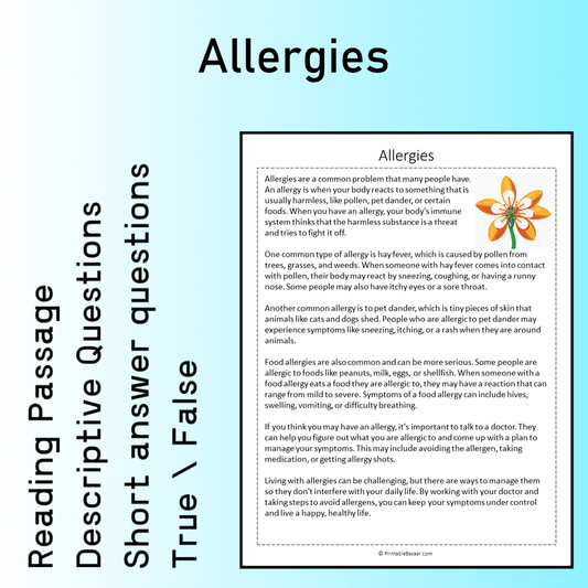 Allergies | Reading Comprehension Passage Printable Worksheet