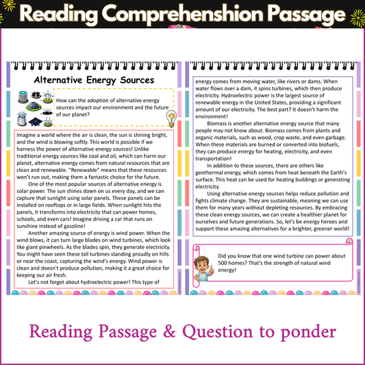 Alternative Energy Sources | Reading Comprehension Passage Printable Worksheet