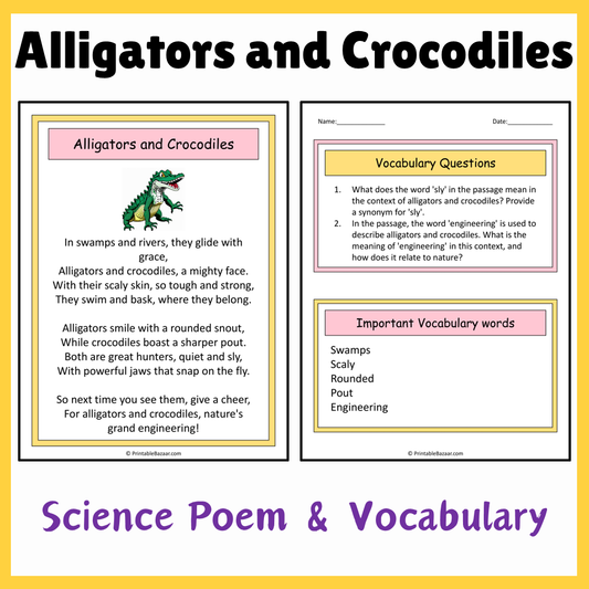 Alligators and Crocodiles | Science Poem Reading Comprehension Activity