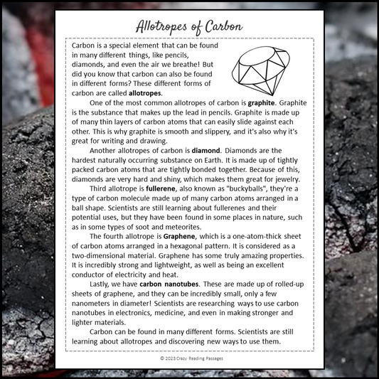 Allotropes Of Carbon Reading Comprehension Passage and Questions | Printable PDF
