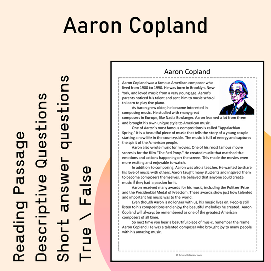 Aaron Copland | Reading Comprehension Passage Printable Activity