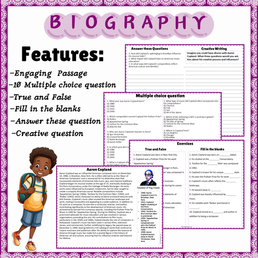 Aaron Copland | Biography Reading Comprehension and Questions Worksheet