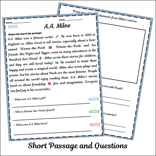 A.A. Milne | Short Reading Comprehension Creative Worksheet