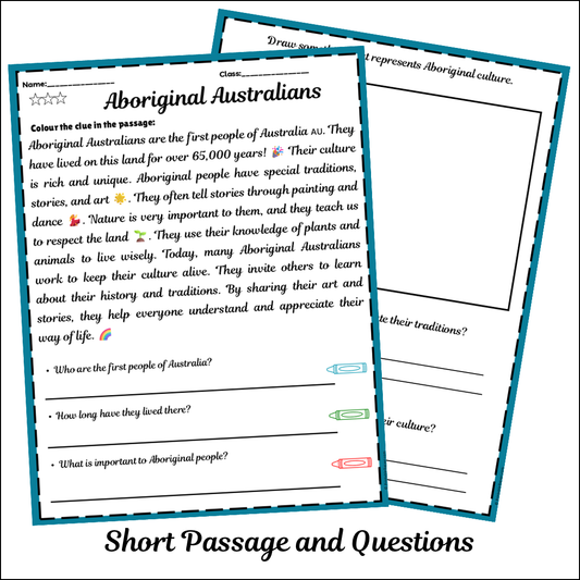 Aboriginal Australians | Short Reading Comprehension Creative Worksheet