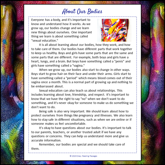About Our Bodies Reading Comprehension Passage and Questions | Printable PDF