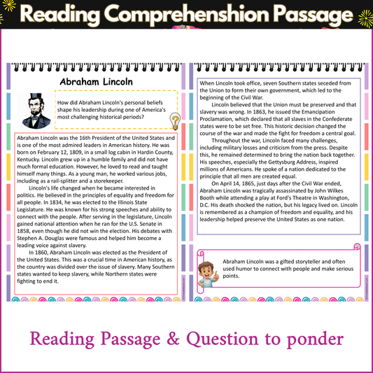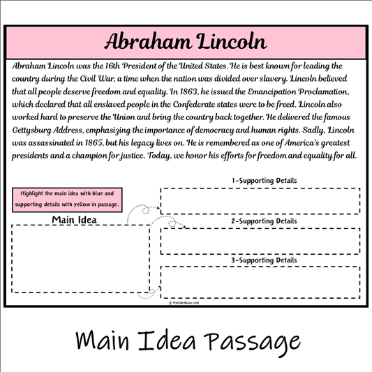 Abraham Lincoln | Main Idea and Supporting Details Reading Passage and Questions