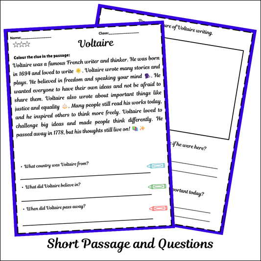 Voltaire | Short Reading Comprehension Creative Worksheet
