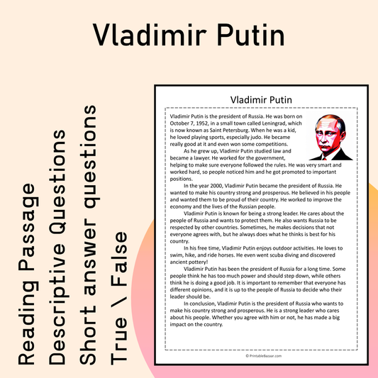 Vladimir Putin | Reading Comprehension Passage Printable Activity