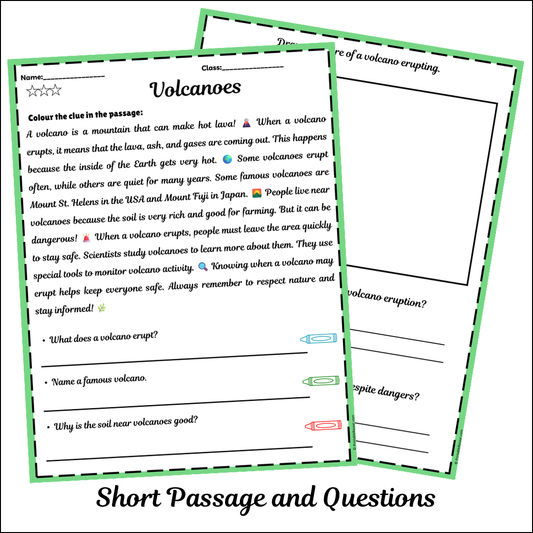 Volcanoes | Short Reading Comprehension Creative Worksheet
