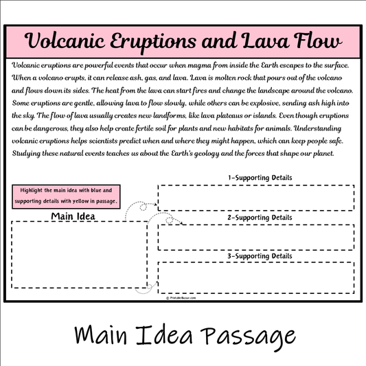 Volcanic Eruptions and Lava Flow | Main Idea and Supporting Details Reading Passage and Questions