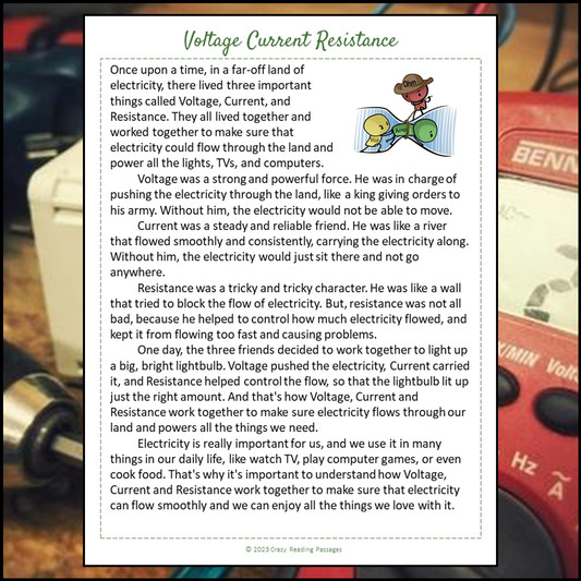 Voltage Current Resistance Reading Comprehension Passage and Questions | Printable PDF