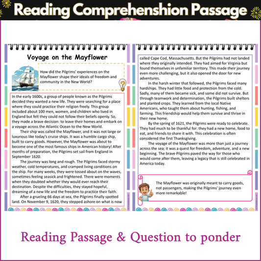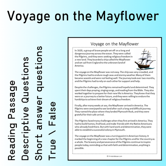 Voyage on the Mayflower | Reading Comprehension Passage Printable Worksheet