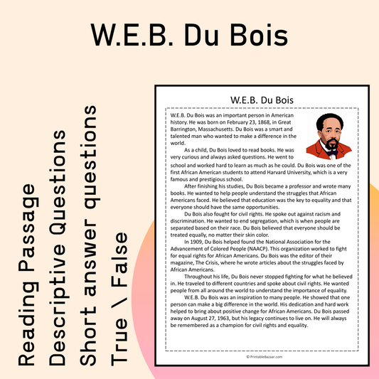 W.E.B. Du Bois | Biography Reading Comprehension and Questions Worksheet