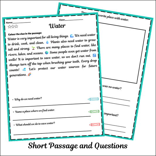 Water Usage | Reading Passage Comprehension Questions Writing Facts Worksheet